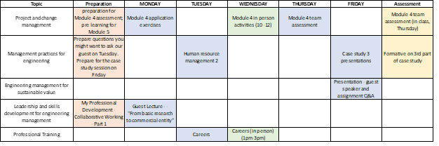 It turned out to be really hard to provide a seamless experience for remote students. I did not even try to implement hybrid teams (though some educators have), but I did try to allow remote students to ‘join’ the room through video link. Even this was problematic, the remote students can see what is going on in the room but don’t feel involved. I have now started to run parallel sessions for in person and remote students, with a dedicated (and properly briefed) facilitator for the online students. This has the additional advantage of creating a ‘team teaching’ environment